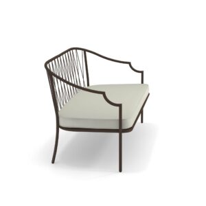 Como è una collezione completa di sedute e tavoli composta da sedia e poltroncina dining, poltroncina dining con schienale alto, poltrona, divano, tavolo dining e tavolo basso. La struttura delle sedute è in tubo di acciaio diametro 22, con spessore 2mm per un elevato livello di performance outdoor. Alla struttura sono connessi dei tondini di acciaio che costituiscono il motivo decorativo dello schienale: questi tondini sono saldati tramite una tecnologia a proiezione, che permette la fusione dei tondini in maniera tecnicamente più pulita, con un effetto estetico più rifinito e conseguentemente minor rischio di ruggine.