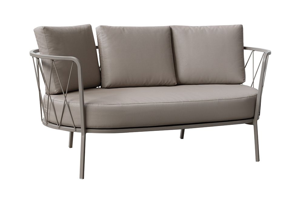 Divano modello Daisy Metallo di Vermobil. La struttura e lo schienale del divano sono realizzati in acciaio zincato, successivamente riverniciati con polvere poliestere che rende il prodotto resistente agli agenti atmosferici.