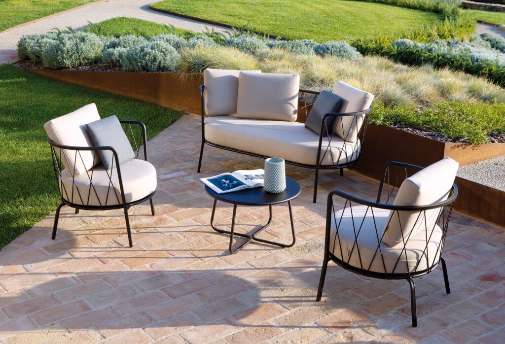 I cuscini del divano sono realizzati con un tessuto di alta qualità resistente all’acqua e ai raggi UV, questo permette che il colore resista nel tempo. Internamente i cuscini sono spalmati con uno strato di PVC che li impermabilizza, infine hanno uno strato di tessuto 3d che permette al cuscino di respirare ed impedisce la formazione della muffa. Sono anche trattati per essere antimacchia. Il prodotto, ideale per arredare zone relax esterne come terrazzi o giardini di casa ma ideale anche per il contract. Si può utilizzare anche per arredare zone a bordo piscina essendo resistente all’acqua e al cloro. Il prodotto è disponibile in diverse colorazioni