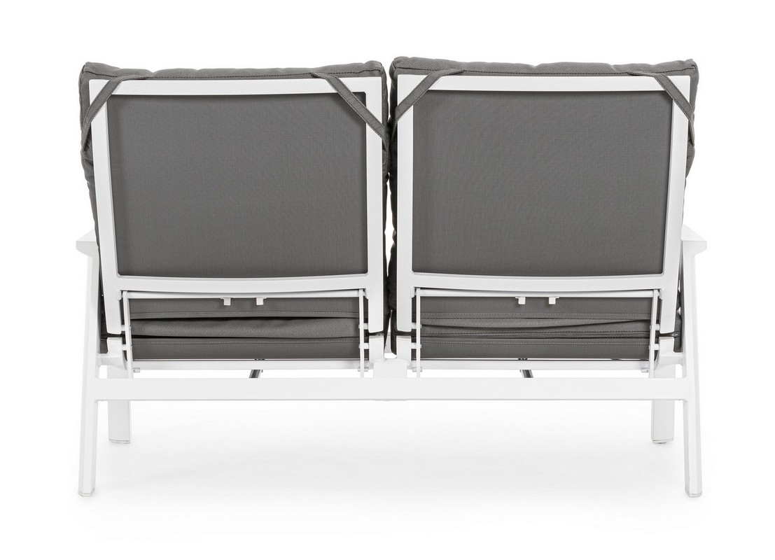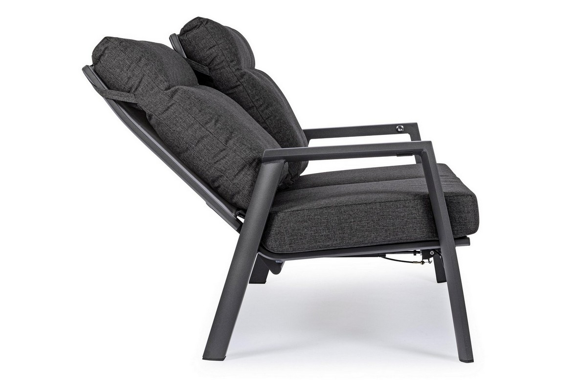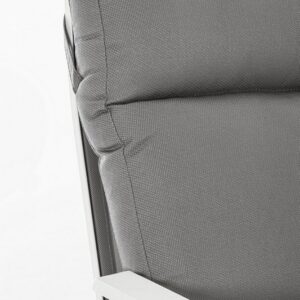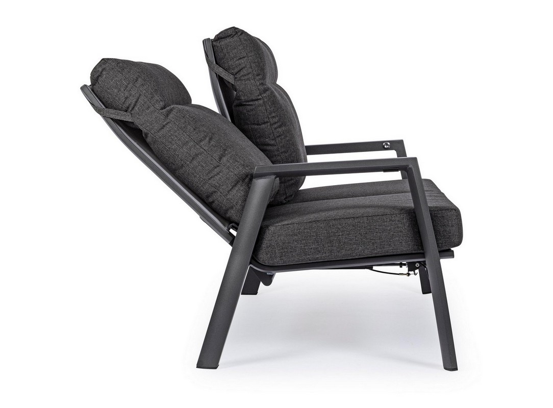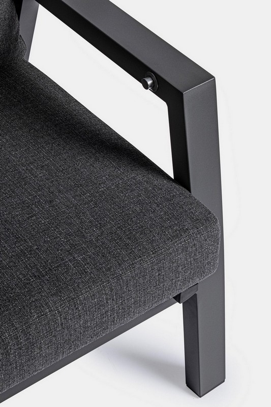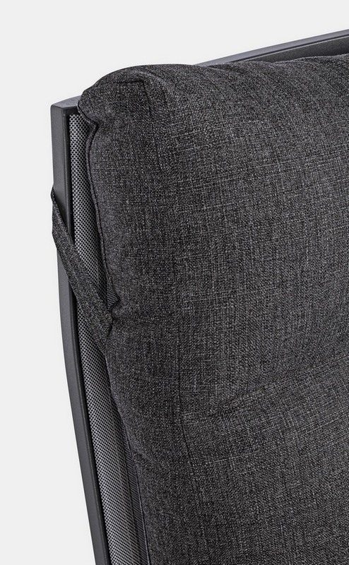 STRUTTURA IN ALLUMINIO VERNICIATA A POLVERE (POLIESTERE). SCHIENALE RECLINABILE IN LIBERA POSIZIONE E SEDUTA IN TEXTILENE 1X1. CUSCINI SFODERABILI CON TESSUTO OLEFIN (100% POLIPROPILENE).