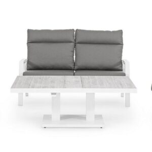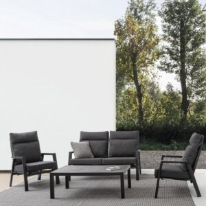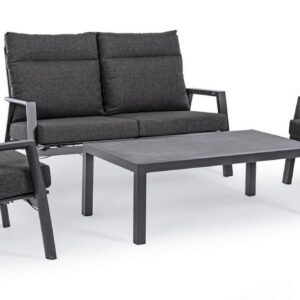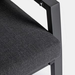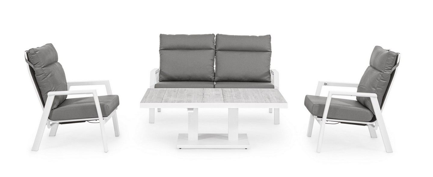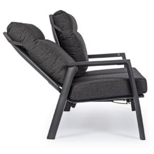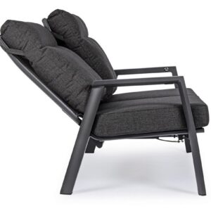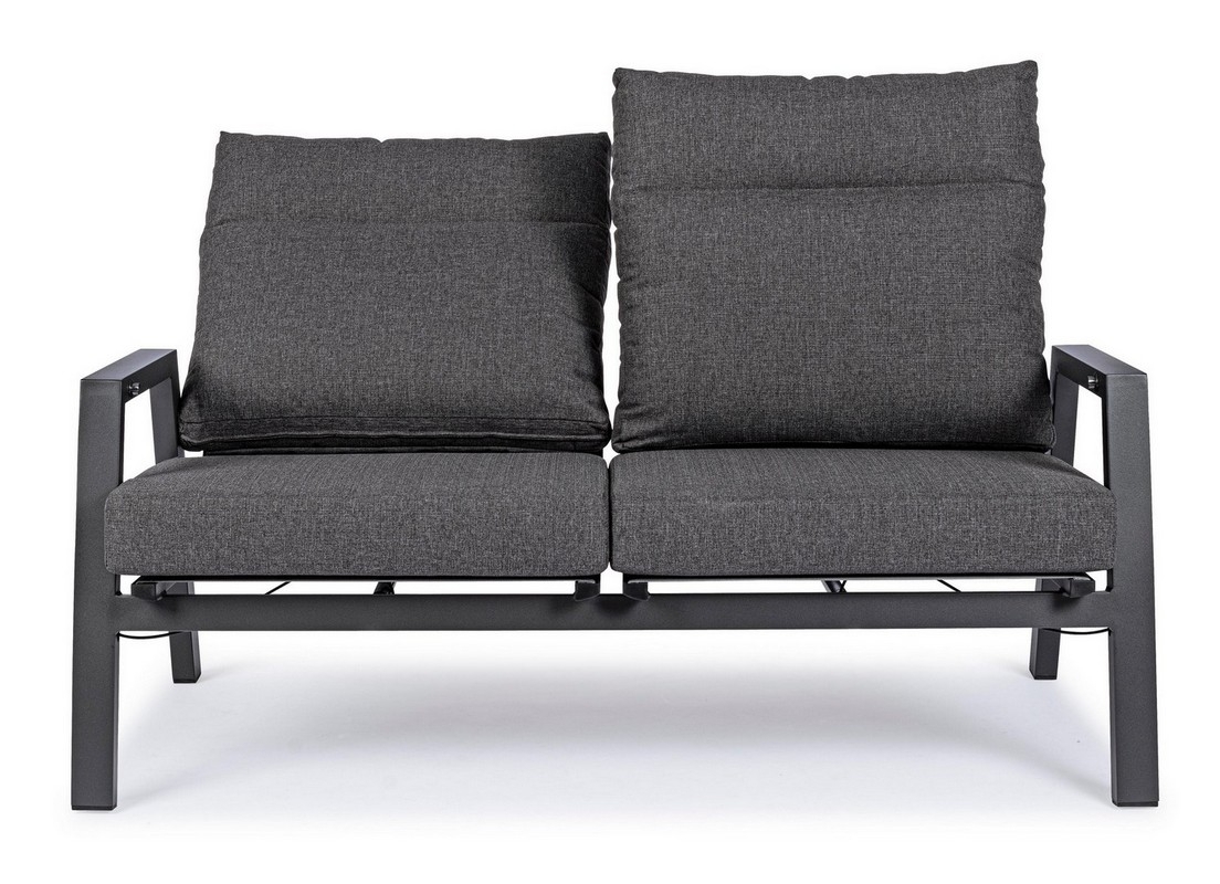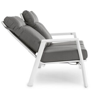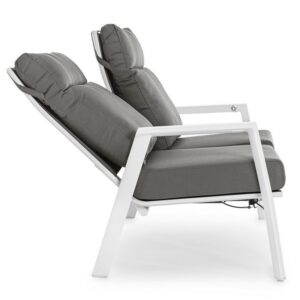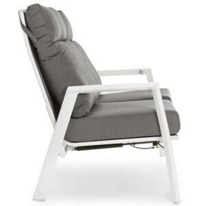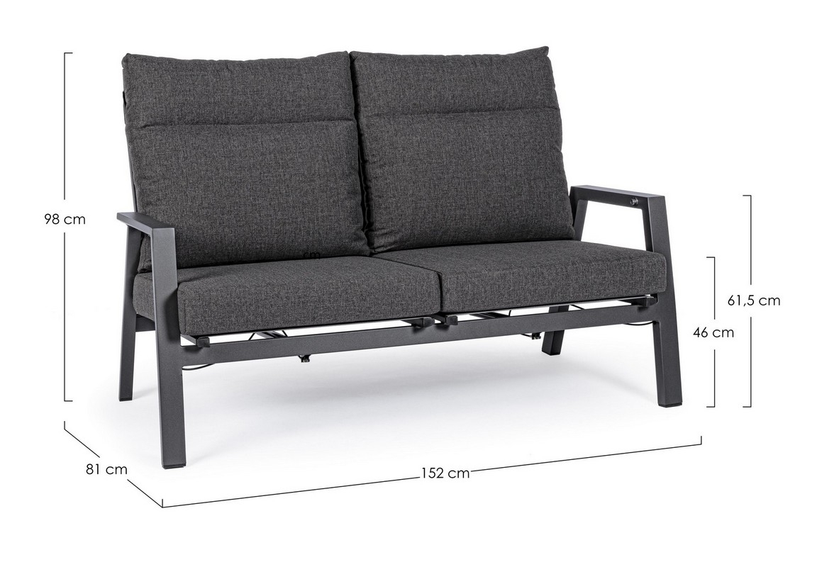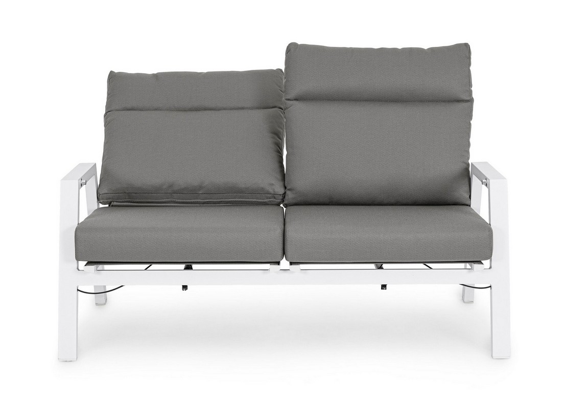 STRUTTURA IN ALLUMINIO VERNICIATA A POLVERE (POLIESTERE). SCHIENALE RECLINABILE IN LIBERA POSIZIONE E SEDUTA IN TEXTILENE 1X1. CUSCINI SFODERABILI CON TESSUTO OLEFIN (100% POLIPROPILENE).