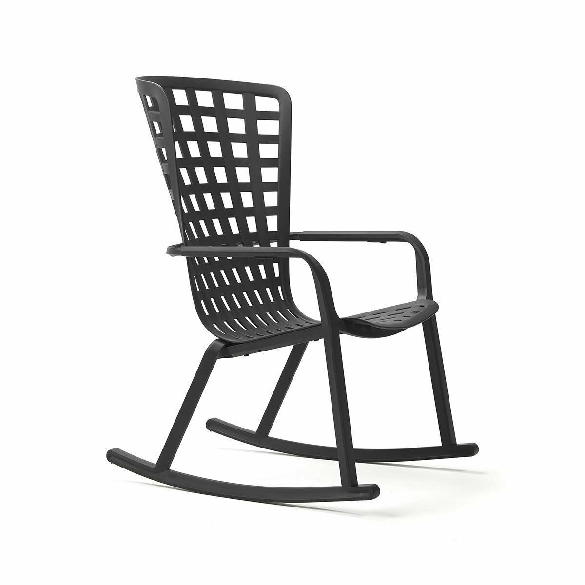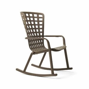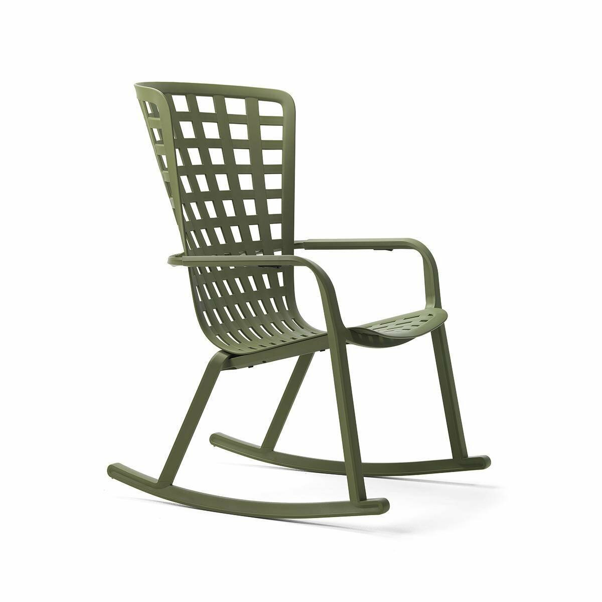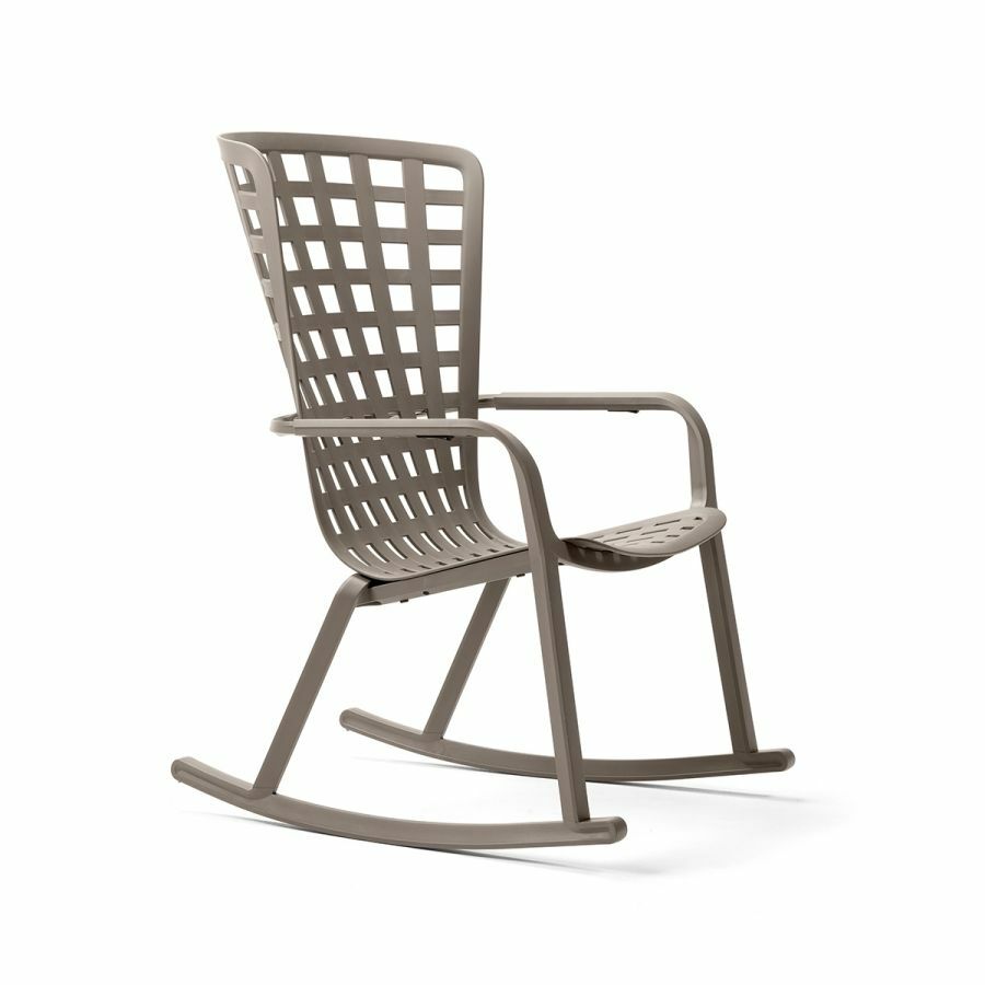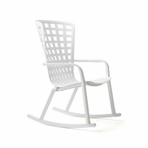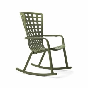 Folio Rocking è la rilassante e stilosa poltrona a dondolo per l’outdoor realizzata in resina fiberglass traforata con motivo a quadri e finitura mat.