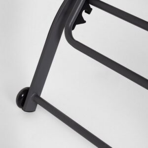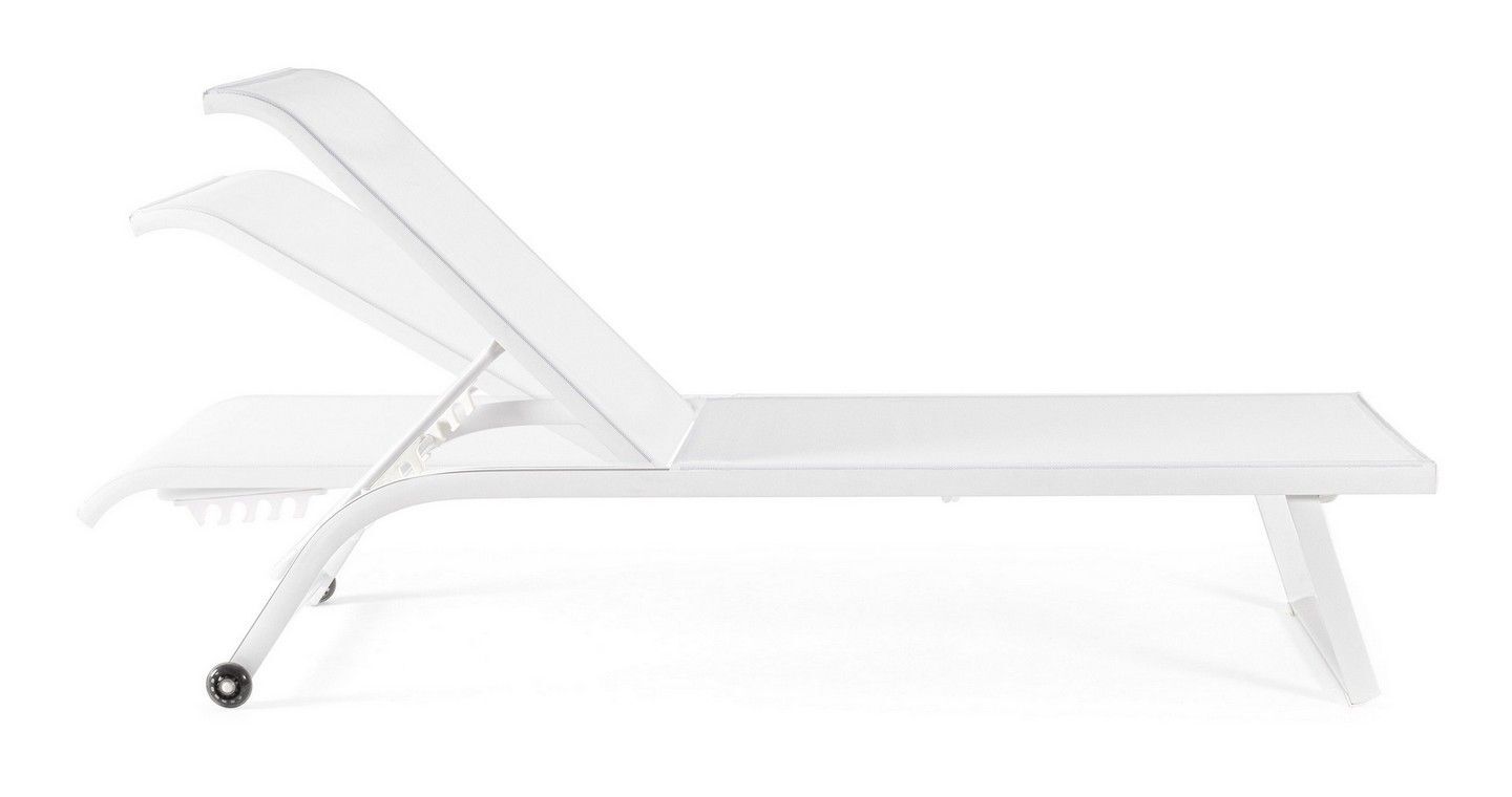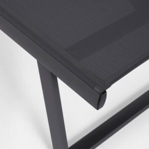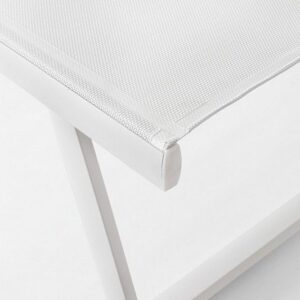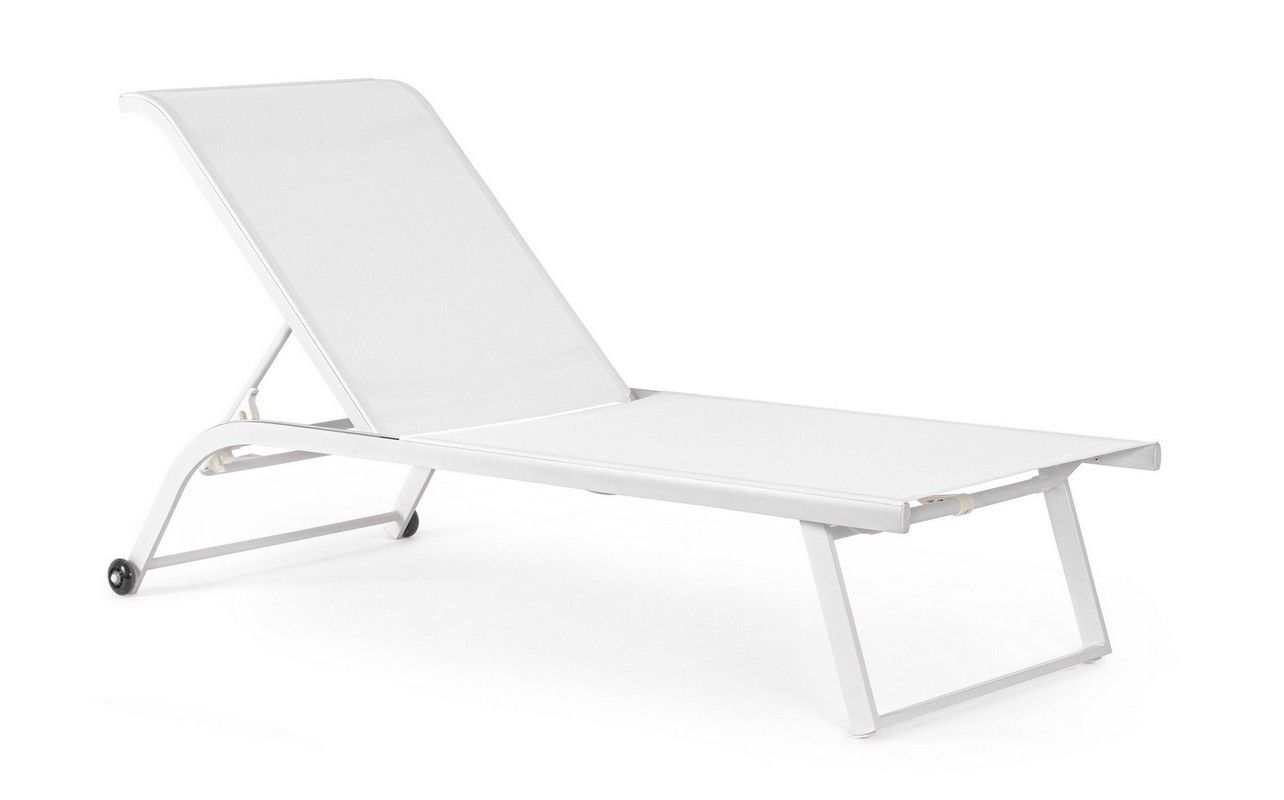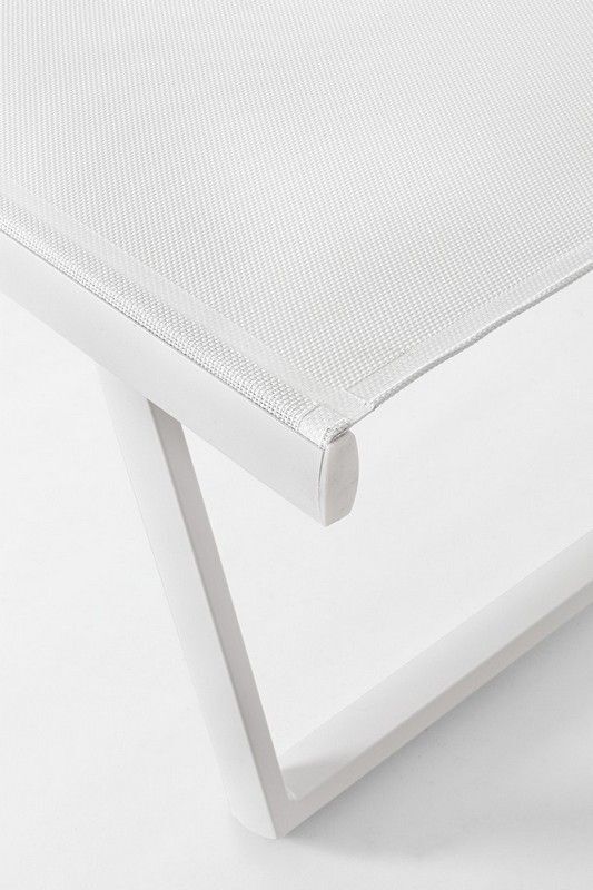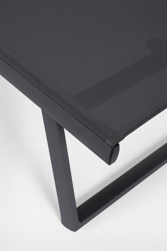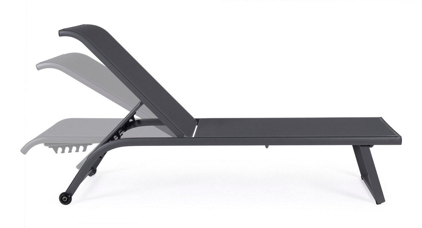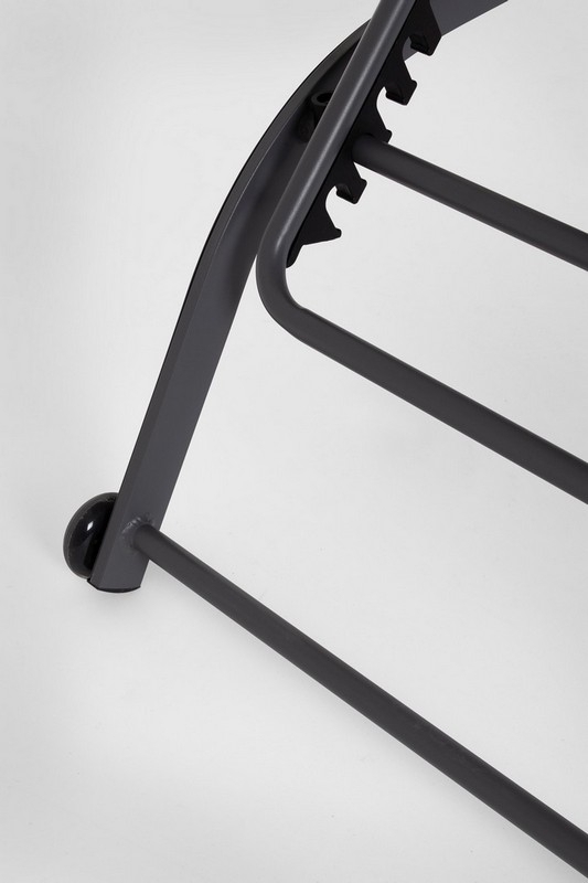 STRUTTURA IN ALLUMINIO, VERNICIATO A POLVERE (POLIESTERE). SEDUTA E SCHIENALE RIVESTITI IN TEXTILENE 2X1 (610G/M2). SCHIENALE RECLINABILE (4 POSIZIONI). VITERIA IN ACCIAIO GALVANIZZATO. RUOTE DA ASSEMBLARE IN PLASTICA (PU).