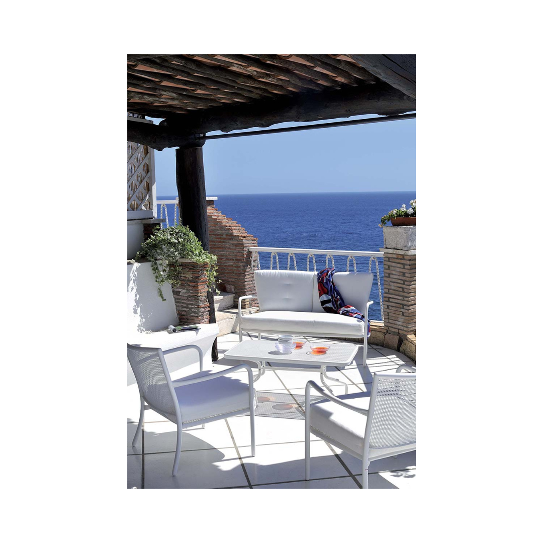 La linea Athena, in acciaio, è una collezione dallo stile classico per un’atmosfera conviviale ma ricercata. Questa collezione è caratterizzata da un inconfondibile motivo ornamentale in lamiera intrecciata, che dona eleganza e carattere alla collezione. Athena è una famiglia di arredi che comprende sedute, tavoli e arredi lounge per ogni momento di relax all’aperto. Le forme avvolgenti e morbide di sedute e chaise longue si combinano con delicatezza ed equilibrata eleganza.