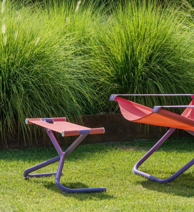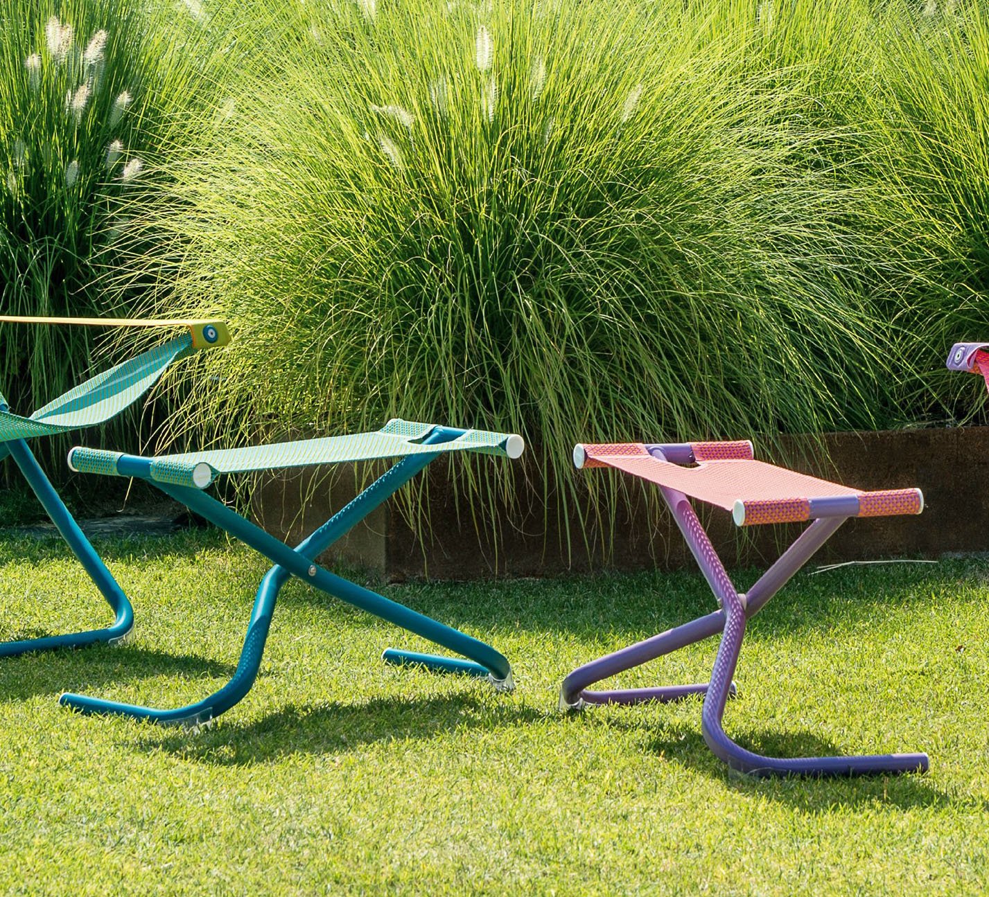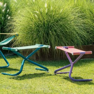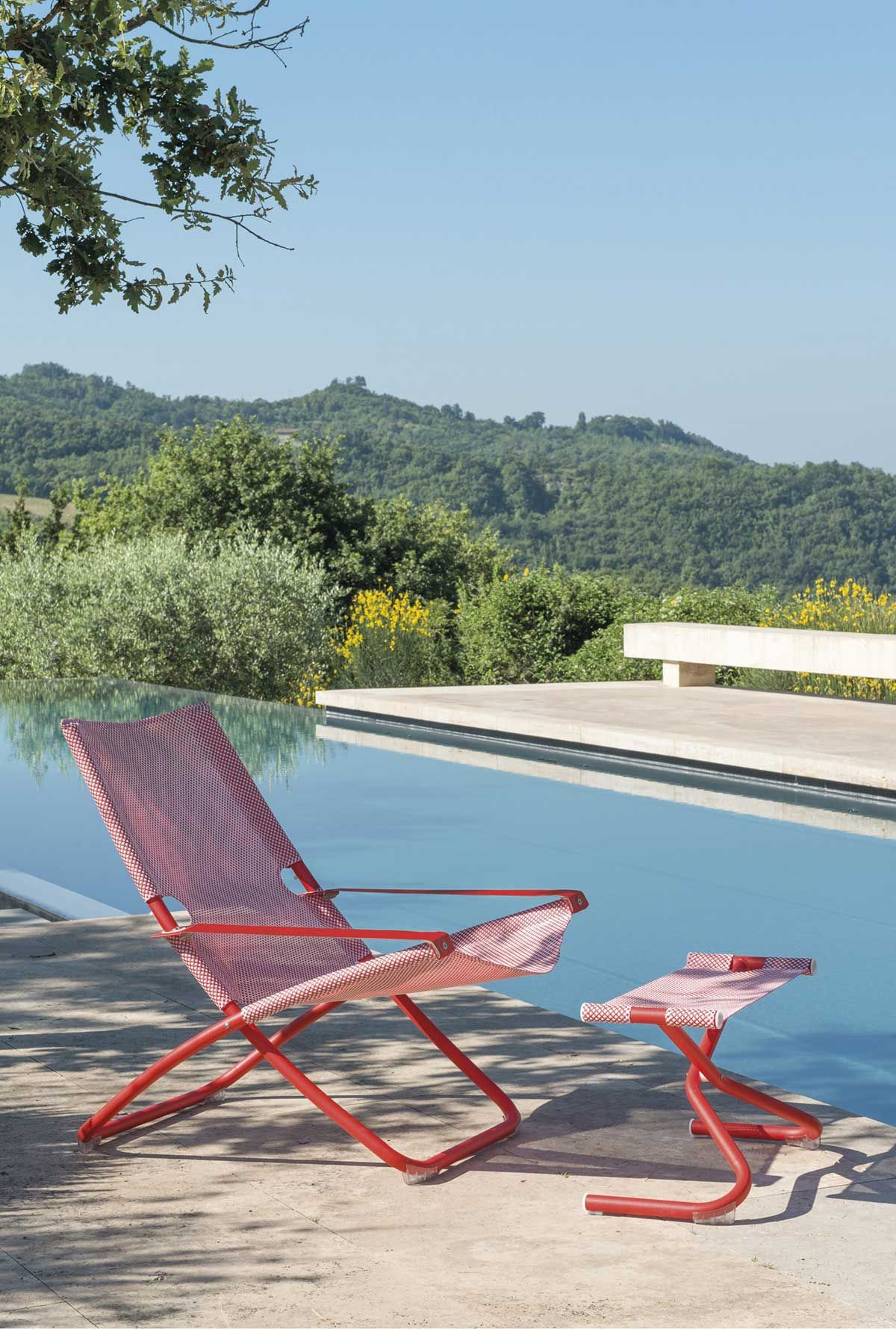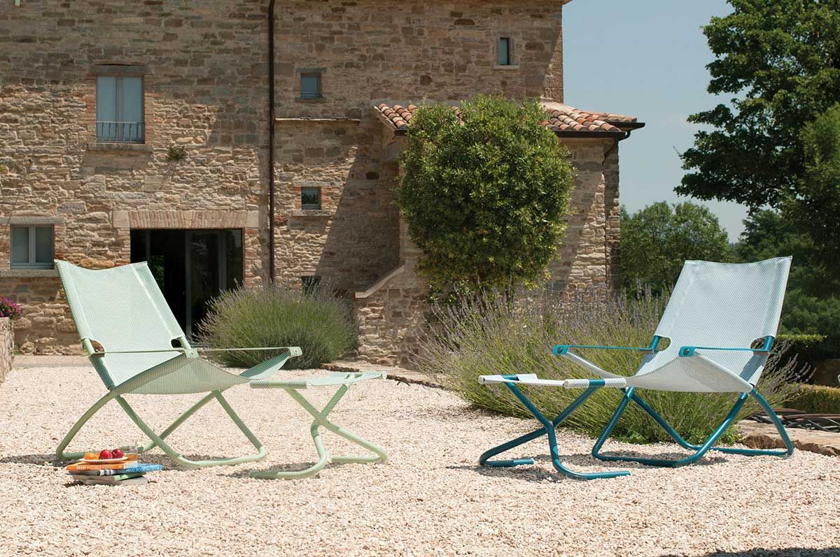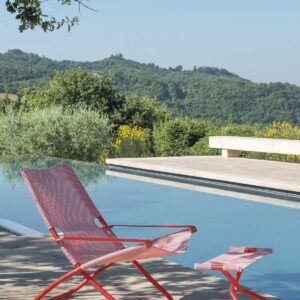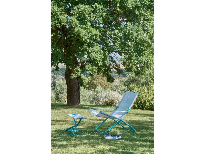 Il Pouf Snooze è una base d’appoggio molto versatile, pertanto può essere utilizzato come poggiapiedi da abbinare alla Sdraio Snooze o alla Poltrona Regista Snooze.