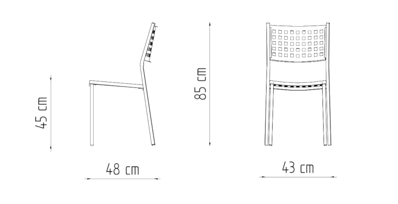 Dimensioni: H 85 L 43 P 48 HS 45 cm