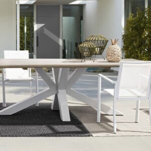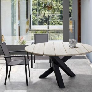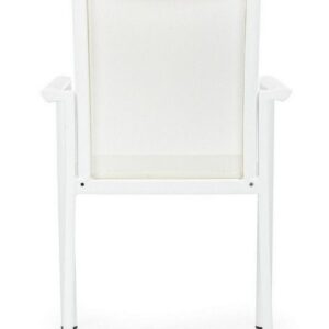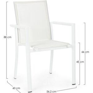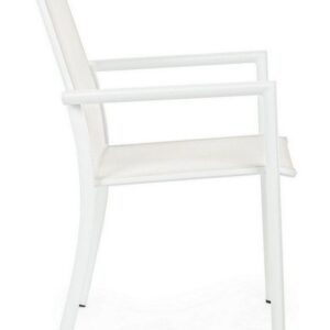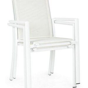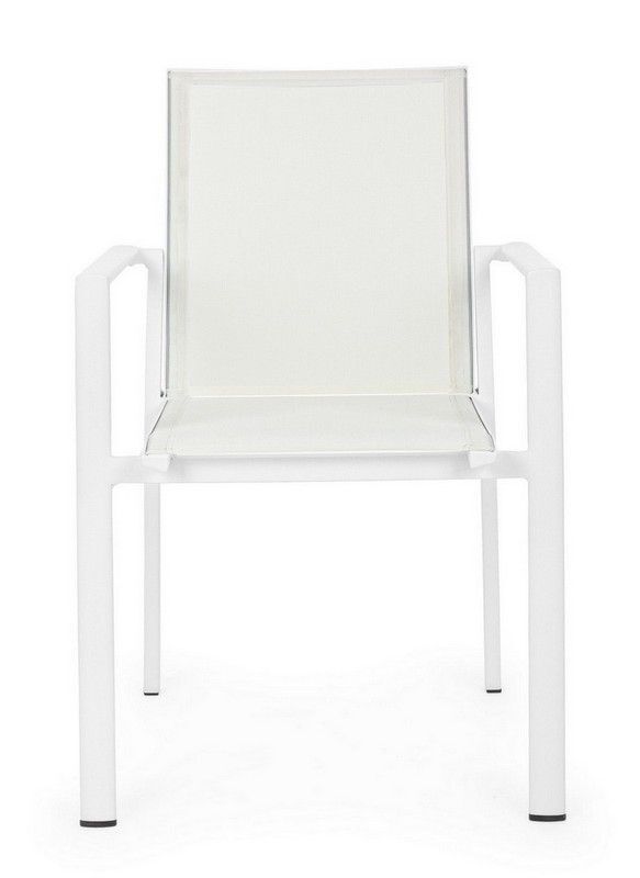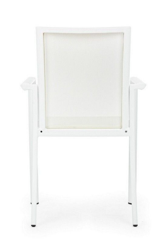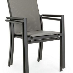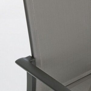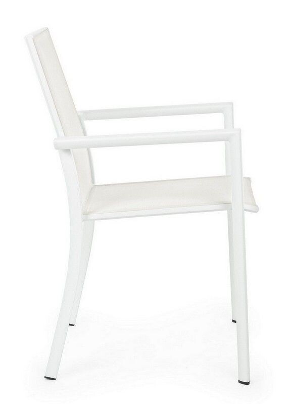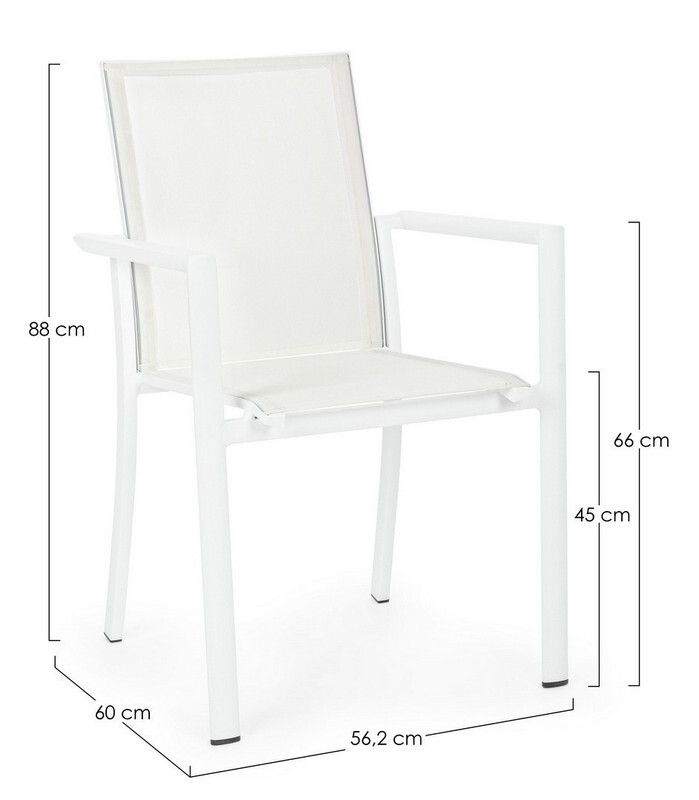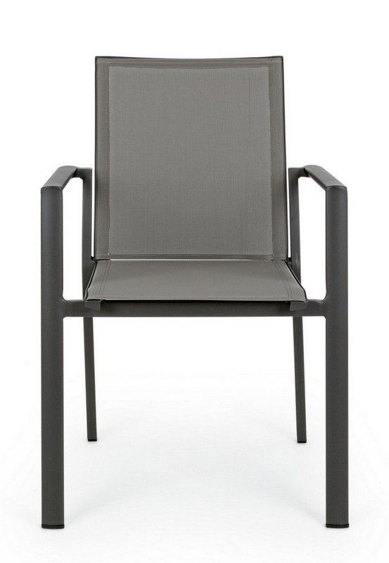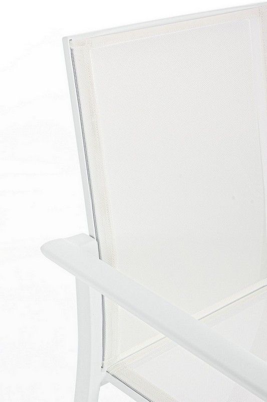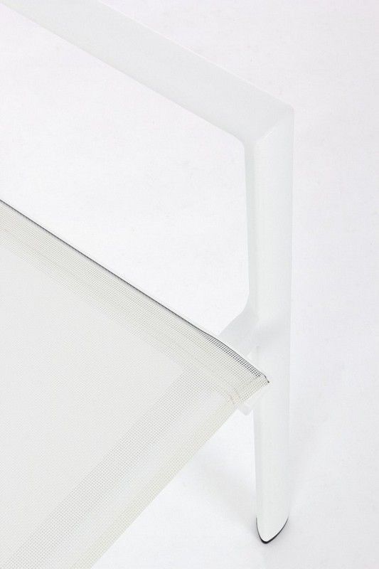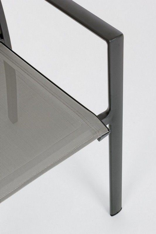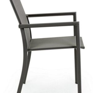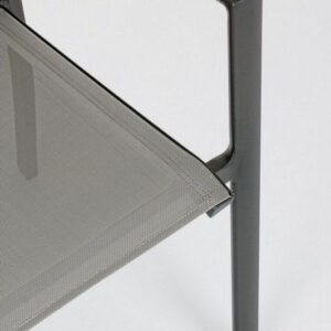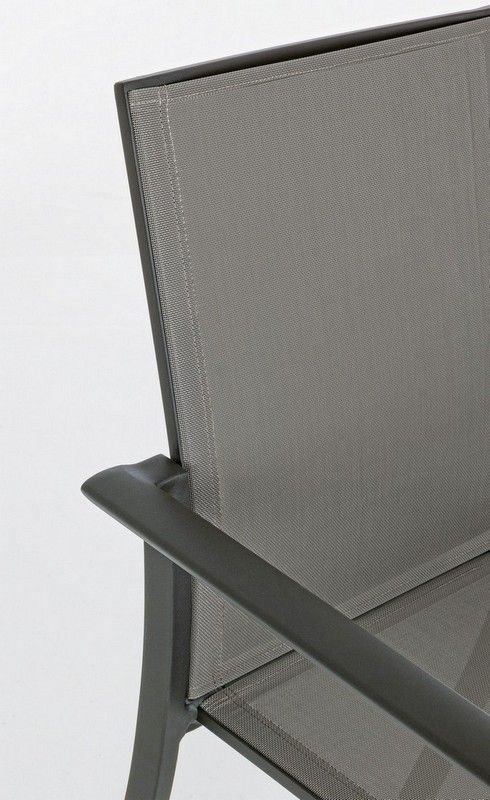 STRUTTURA IN ALLUMINIO, VERNICIATO A POLVERE (POLIESTERE). SEDUTA E SCHIENALE IN TEXTILENE 1X1. IMPILABILE.