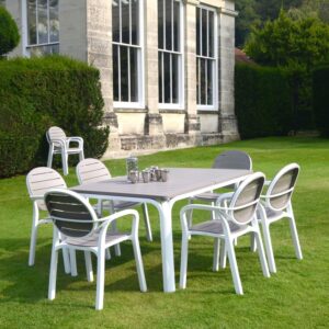Set composto da tavolo Nardi Alloro allungabile 100×140/210cm + 6 poltroncine Palma bianco/tortora