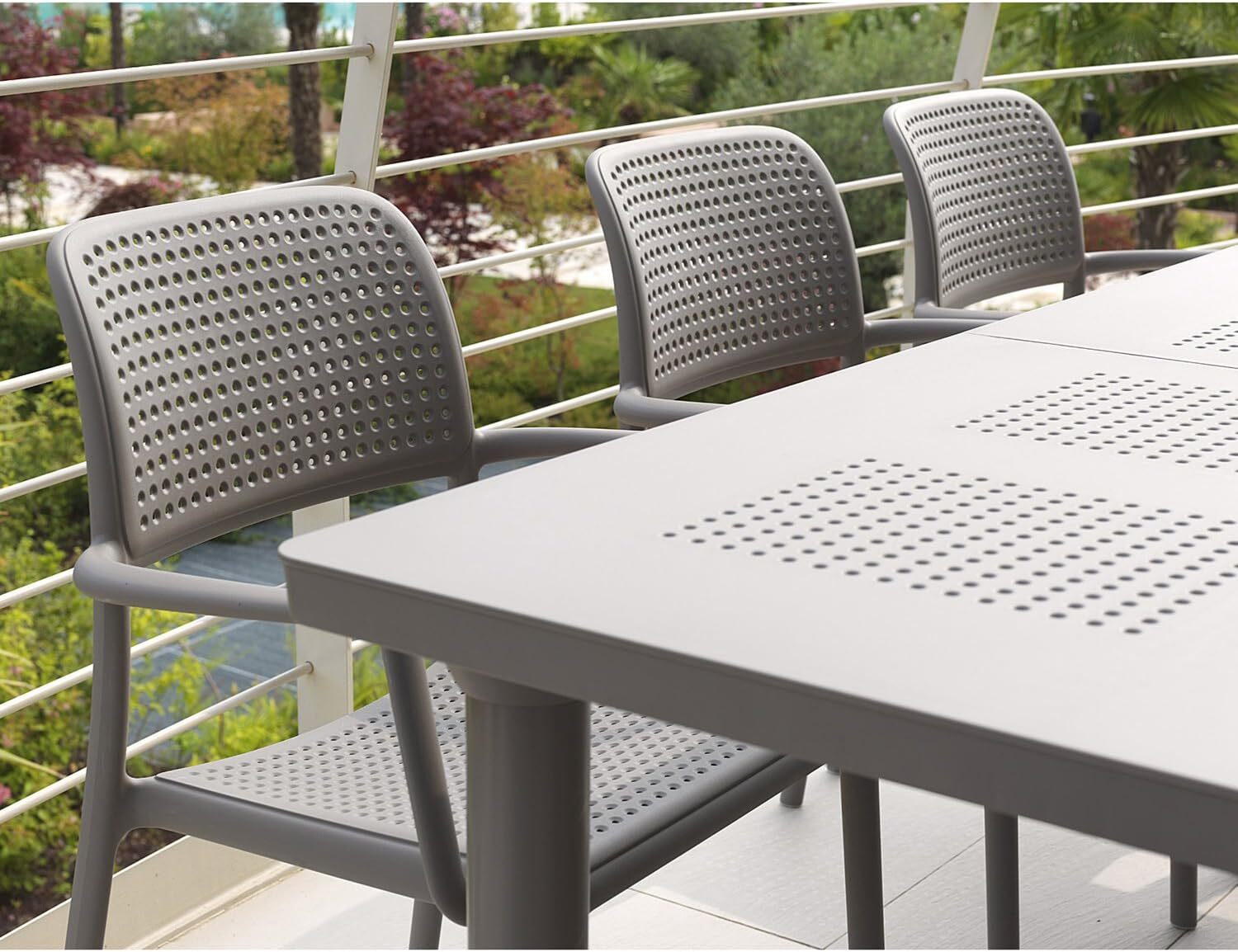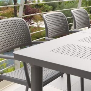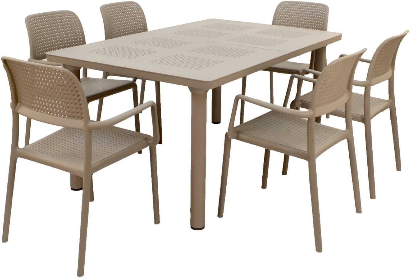 Set composto da tavolo Libeccio allungabile 100×160/220cm + 6 poltroncine Bora tortora