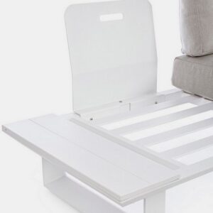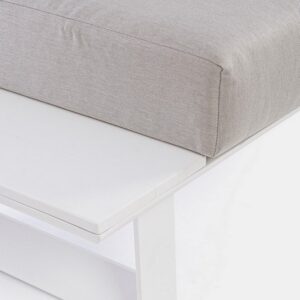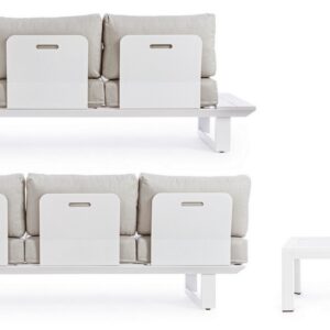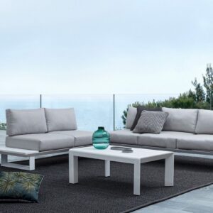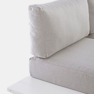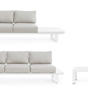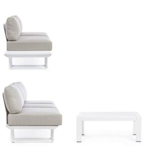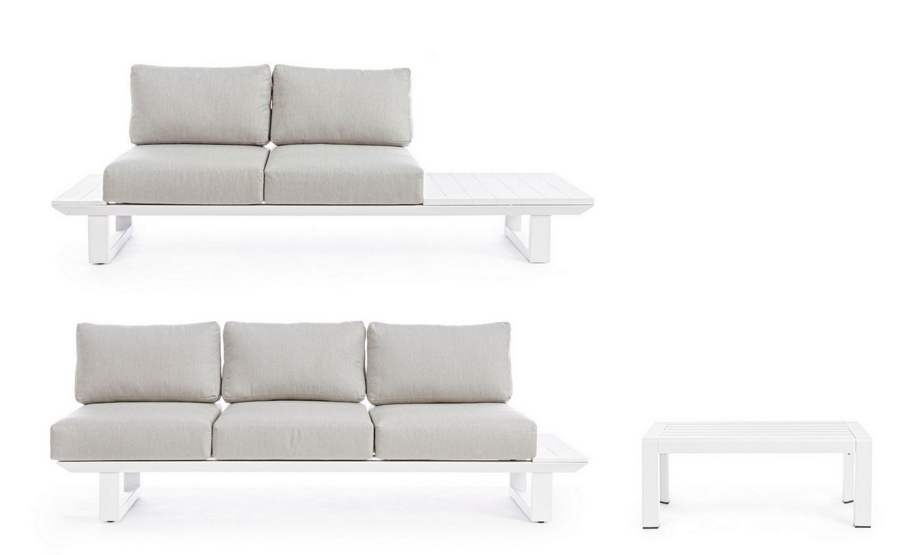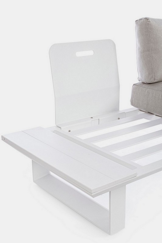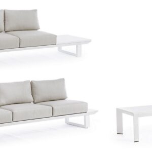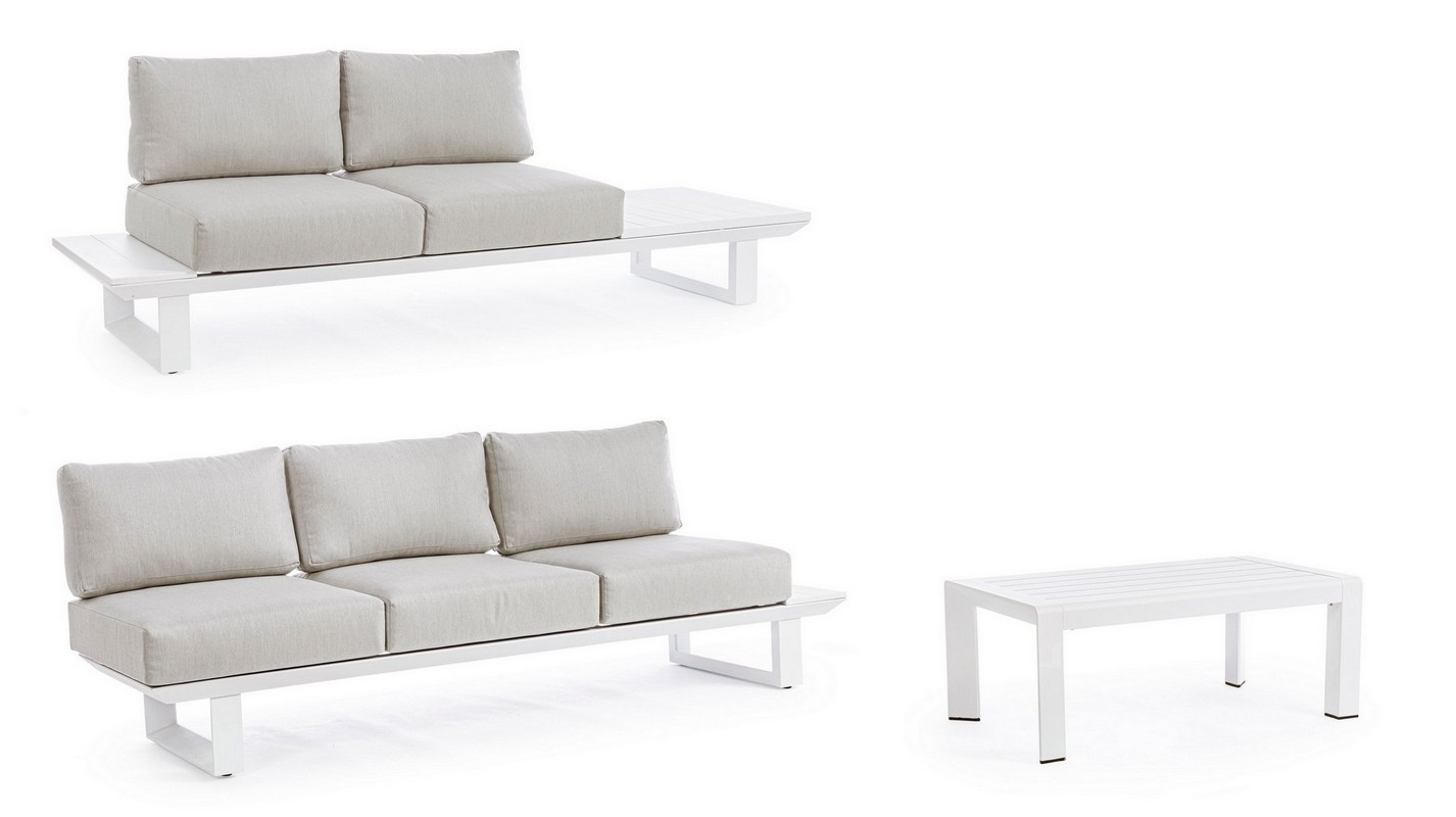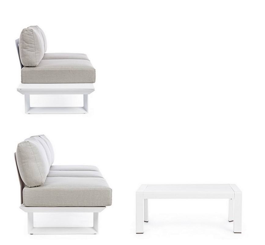 STRUTTURA IN ALLUMINIO, VERNICIATO A POLVERE (POLIESTERE). CUSCINI SFODERABILI CON TESSUTO OLEFIN (100% POLIPROPILENE). GAMBE E SCHIENALI DA ASSEMBLARE.