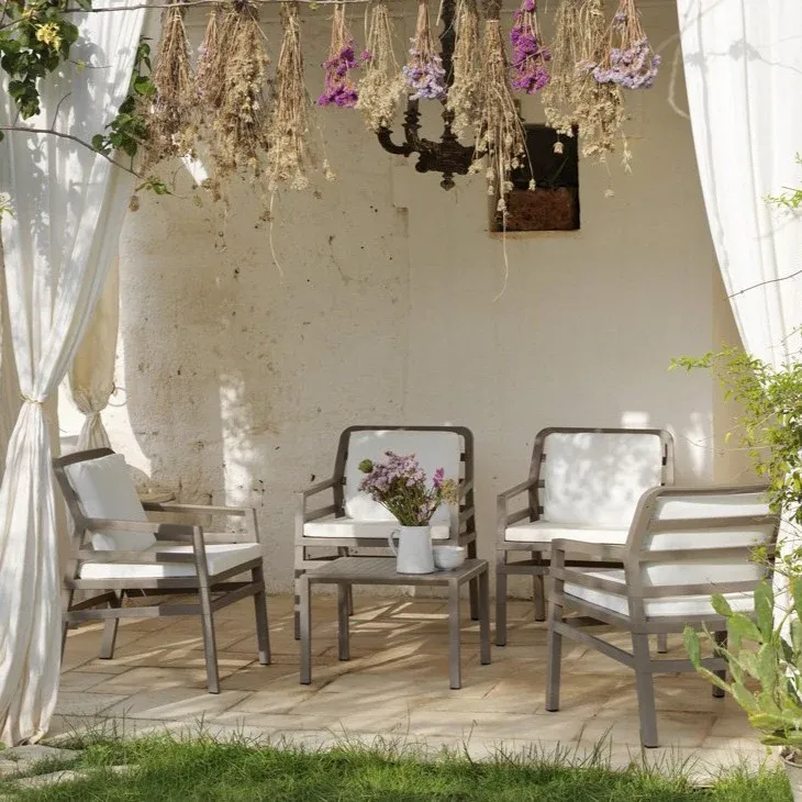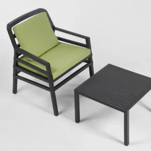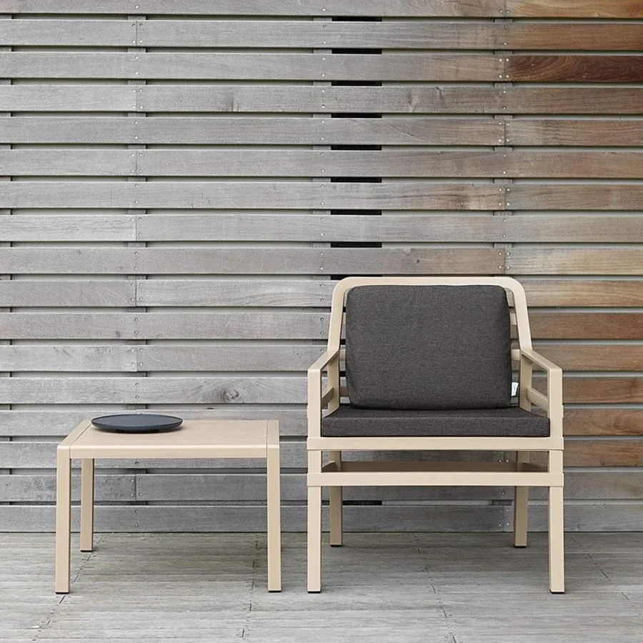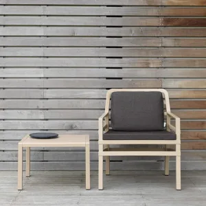 Tavolino da appoggio con piano quadrato dogato che evoca il legno laccato, completamente scatolato e chiuso. Disponibile in diversi colori.Ispirato alle staccionate in legno il tavolino da giardino Aria 60 di Nardi, è realizzato in polipropilene stampato con la tecnica ad iniezione air-moulding e si presenta con un piano quadrato a doghe da 60x60cm, completamente scatolato e chiuso per una facile pulizia. L’altezza del tavolino è di 40 cm. I piedini antiscivolo garantiscono maggiore stabilità su qualsiasi tipo di terreno. L’estrema robustezza, la resistenza agli agenti atmosferici e la semplicità di lavaggio lo rende adatto agli ambienti casa e contract (indoor e outdoor), terrazzi, giardino, gazebo, porticato, bordo piscina, ecc.