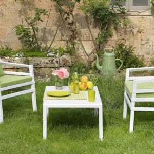 Tavolino da appoggio con piano quadrato dogato che evoca il legno laccato, completamente scatolato e chiuso. Disponibile in diversi colori.Ispirato alle staccionate in legno il tavolino da giardino Aria 60 di Nardi, è realizzato in polipropilene stampato con la tecnica ad iniezione air-moulding e si presenta con un piano quadrato a doghe da 60x60cm, completamente scatolato e chiuso per una facile pulizia. L’altezza del tavolino è di 40 cm.