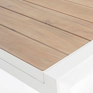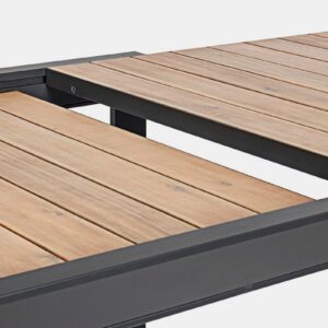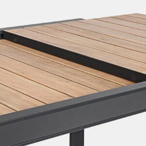 STRUTTURA IN ALLUMINIO VERNICIATO A POLVERE (POLIESTERE). PIANO CON DOGHE IN ALLUMINIO CON VERNICIATURA EFFETTO LEGNO. PIEDINI REGOLABILI. VITERIA IN ACCIAIO INOSSIDABILE. GAMBE DA ASSEMBLARE.