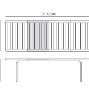 Elegante tavolo con piano dogato in DurelTop e gambe in alluminio verniciato a polveri. Piano estensibile da 210 cm a 280 cm. Facilmente montabile e smontabile.