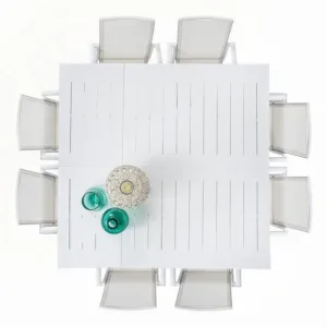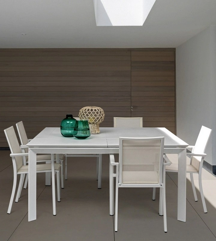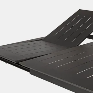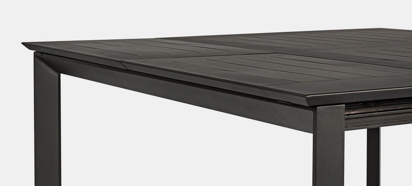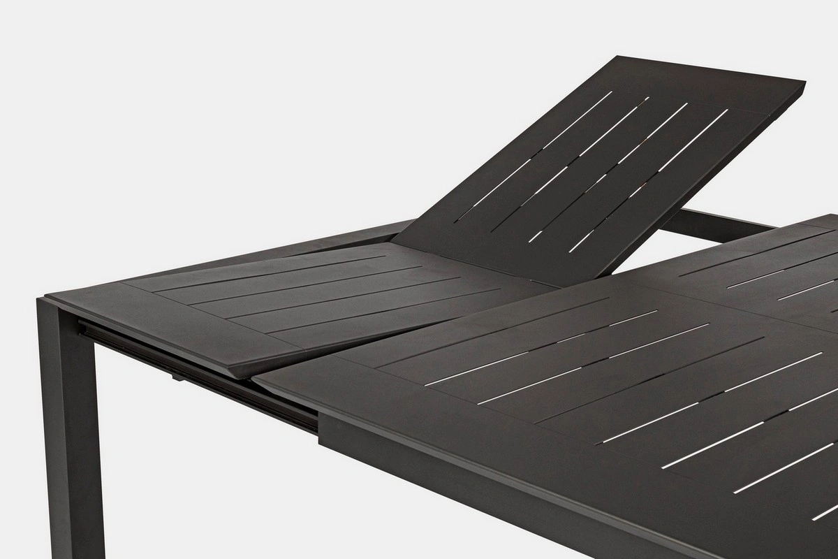 STRUTTURA IN ALLUMINIO, VERNICIATO A POLVERE (POLIESTERE). ALLUNGABILE CON APERTURA TELESCOPICA. VITERIA IN ACCIAIO INOSSIDABILE. GAMBE DA ASSEMBLARE.
