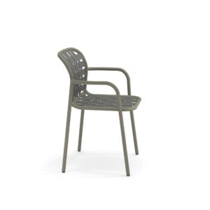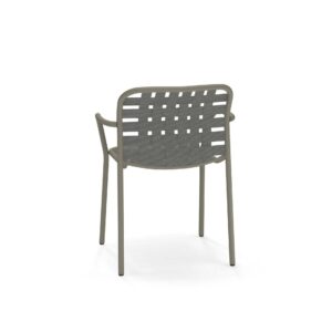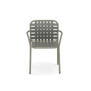 L’intreccio di cinghie elastiche, accoppiate in modo innovativo alla struttura in alluminio dalle linee sofisticate, dá vita ad un insieme dallo stile insolito ed eclettico e dal comfort accentuato, pienamente fruibile per uso esterno. Yard è una linea completa composta da sedia, poltroncina, tavoli fissi, poltrone relax, tavoli bassi di diverse dimensioni e lettino. Completano la collezione tavoli alti di varie misure per ambienti contract e residenziali.